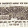 Panoramic city maps, popular at the turn of the century, depicted U.S. towns from the perspective that came to be known as bird’s-eye maps. These non-photographic old maps, depicted from oblique angles, showed street patterns, buildings and the predominant surrounding landscape in perspective. Going to great lengths to make these maps, artists would often climb surrounding hills or trees, sometimes even building platforms from which to achieve the bird’s eye” perspective. They also used to take rides in hot air balloons in order to get the proper perspective. To bolster sales of these old panoramic city maps, the artists would often choke town harbors full of ships, include proposed building developments and depict a vivacious, bustling industry. Historically interesting and beautifully drawn, it is no wonder these old panoramic city maps are making a popular comeback. Bring the spirit of your town’s history back to life with these stunning old bird’s-eye maps.”