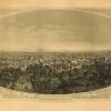 Panoramic city maps, popular at the turn of the century, depicted U.S. towns from the perspective that came to be known as bird’s-eye maps. These non-photographic old maps, depicted from oblique angles, showed street patterns, buildings and the predominant surrounding landscape in perspective. Going to great lengths to make these maps, artists would often climb surrounding hills or trees, sometimes even building platforms from which to achieve the bird’s eye” perspective. They also used to take rides in hot air balloons in order to get the proper perspective. To bolster sales of these old panoramic city maps, the artists would often choke town harbors full of ships, include proposed building developments and depict a vivacious, bustling industry. Historically interesting and beautifully drawn, it is no wonder these old panoramic city maps are making a popular comeback. Bring the spirit of your town’s history back to life with these stunning old bird’s-eye maps.”