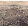 Panoramic city maps, popular at the turn of the century, depicted U.S. towns from the perspective that came to be known as bird’s-eye maps. These non-photographic old maps, depicted from oblique angles, showed street patterns, buildings and the predominant surrounding landscape in perspective. Going to great lengths to make these maps, artists would often climb surrounding hills or trees, sometimes even building platforms from which to achieve the bird’s eye” perspective. They also used to take rides in hot air balloons in order to get the proper perspective. To bolster sales of these old panoramic city maps, the artists would often choke town harbors full of ships, include proposed building developments and depict a vivacious, bustling industry. Historically interesting and beautifully drawn, it is no wonder these old panoramic city maps are making a popular comeback. Bring the spirit of your town’s history back to life with these stunning old bird’s-eye maps.”