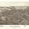 Panoramic city maps, popular at the turn of the century, depicted U.S. towns from the perspective that came to be known as bird’s-eye maps. These non-photographic old maps, depicted from oblique angles, showed street patterns, buildings and the predominant surrounding landscape in perspective. Going to great lengths to make these maps, artists would often climb surrounding hills or trees, sometimes even building platforms from which to achieve the bird’s eye” perspective. They also used to take rides in hot air balloons in order to get the proper perspective. To bolster sales of these old panoramic city maps, the artists would often choke town harbors full of ships, include proposed building developments and depict a vivacious, bustling industry. Historically interesting and beautifully drawn, it is no wonder these old panoramic city maps are making a popular comeback. Bring the spirit of your town’s history back to life with these stunning old bird’s-eye maps.”