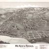 Panoramic city maps, popular at the turn of the century, depicted U.S. towns from the perspective that came to be known as bird’s-eye maps. These non-photographic old maps, depicted from oblique angles, showed street patterns, buildings and the predominant surrounding landscape in perspective. Going to great lengths to make these maps, artists would often climb surrounding hills or trees, sometimes even building platforms from which to achieve the bird’s eye” perspective. They also used to take rides in hot air balloons in order to get the proper perspective. To bolster sales of these old panoramic city maps, the artists would often choke town harbors full of ships, include proposed building developments and depict a vivacious, bustling industry. Historically interesting and beautifully drawn, it is no wonder these old panoramic city maps are making a popular comeback. Bring the spirit of your town’s history back to life with these stunning old bird’s-eye maps.”