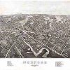 Panoramic city maps, popular at the turn of the century, depicted U.S. towns from the perspective that came to be known as bird’s-eye maps. These non-photographic old maps, depicted from oblique angles, showed street patterns, buildings and the predominant surrounding landscape in perspective. Going to great lengths to make these maps, artists would often climb surrounding hills or trees, sometimes even building platforms from which to achieve the bird’s eye” perspective. They also used to take rides in hot air balloons in order to get the proper perspective. To bolster sales of these old panoramic city maps, the artists would often choke town harbors full of ships, include proposed building developments and depict a vivacious, bustling industry. Historically interesting and beautifully drawn, it is no wonder these old panoramic city maps are making a popular comeback. Bring the spirit of your town’s history back to life with these stunning old bird’s-eye maps.”
