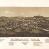 Panoramic city maps, popular at the turn of the century, depicted U.S. towns from the perspective that came to be known as bird’s-eye maps. These non-photographic old maps, depicted from oblique angles, showed street patterns, buildings and the predominant surrounding landscape in perspective. Going to great lengths to make these maps, artists would often climb surrounding hills or trees, sometimes even building platforms from which to achieve the bird’s eye” perspective. They also used to take rides in hot air balloons in order to get the proper perspective. To bolster sales of these old panoramic city maps, the artists would often choke town harbors full of ships, include proposed building developments and depict a vivacious, bustling industry. Historically interesting and beautifully drawn, it is no wonder these old panoramic city maps are making a popular comeback. Bring the spirit of your town’s history back to life with these stunning old bird’s-eye maps.”