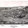 Panoramic city maps, popular at the turn of the century, depicted U.S. towns from the perspective that came to be known as bird’s-eye maps. These non-photographic old maps, depicted from oblique angles, showed street patterns, buildings and the predominant surrounding landscape in perspective. Going to great lengths to make these maps, artists would often climb surrounding hills or trees, sometimes even building platforms from which to achieve the bird’s eye” perspective. They also used to take rides in hot air balloons in order to get the proper perspective. To bolster sales of these old panoramic city maps, the artists would often choke town harbors full of ships, include proposed building developments and depict a vivacious, bustling industry. Historically interesting and beautifully drawn, it is no wonder these old panoramic city maps are making a popular comeback. Bring the spirit of your town’s history back to life with these stunning old bird’s-eye maps.”