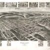 Panoramic city maps, popular at the turn of the century, depicted U.S. towns from the perspective that came to be known as bird’s-eye maps. These non-photographic old maps, depicted from oblique angles, showed street patterns, buildings and the predominant surrounding landscape in perspective. Going to great lengths to make these maps, artists would often climb surrounding hills or trees, sometimes even building platforms from which to achieve the bird’s eye” perspective. They also used to take rides in hot air balloons in order to get the proper perspective. To bolster sales of these old panoramic city maps, the artists would often choke town harbors full of ships, include proposed building developments and depict a vivacious, bustling industry. Historically interesting and beautifully drawn, it is no wonder these old panoramic city maps are making a popular comeback. Bring the spirit of your town’s history back to life with these stunning old bird’s-eye maps.”