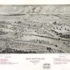 Panoramic city maps, popular at the turn of the century, depicted U.S. towns from the perspective that came to be known as bird’s-eye maps. These non-photographic old maps, depicted from oblique angles, showed street patterns, buildings and the predominant surrounding landscape in perspective. Going to great lengths to make these maps, artists would often climb surrounding hills or trees, sometimes even building platforms from which to achieve the bird’s eye” perspective. They also used to take rides in hot air balloons in order to get the proper perspective. To bolster sales of these old panoramic city maps, the artists would often choke town harbors full of ships, include proposed building developments and depict a vivacious, bustling industry. Historically interesting and beautifully drawn, it is no wonder these old panoramic city maps are making a popular comeback. Bring the spirit of your town’s history back to life with these stunning old bird’s-eye maps.”