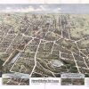 Panoramic city maps, popular at the turn of the century, depicted U.S. towns from the perspective that came to be known as bird’s-eye maps. These non-photographic old maps, depicted from oblique angles, showed street patterns, buildings and the predominant surrounding landscape in perspective. Going to great lengths to make these maps, artists would often climb surrounding hills or trees, sometimes even building platforms from which to achieve the bird’s eye” perspective. They also used to take rides in hot air balloons in order to get the proper perspective. To bolster sales of these old panoramic city maps, the artists would often choke town harbors full of ships, include proposed building developments and depict a vivacious, bustling industry. Historically interesting and beautifully drawn, it is no wonder these old panoramic city maps are making a popular comeback. Bring the spirit of your town’s history back to life with these stunning old bird’s-eye maps.”