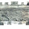 Panoramic city maps, popular at the turn of the century, depicted U.S. towns from the perspective that came to be known as bird’s-eye maps. These non-photographic old maps, depicted from oblique angles, showed street patterns, buildings and the predominant surrounding landscape in perspective. Going to great lengths to make these maps, artists would often climb surrounding hills or trees, sometimes even building platforms from which to achieve the bird’s eye” perspective. They also used to take rides in hot air balloons in order to get the proper perspective. To bolster sales of these old panoramic city maps, the artists would often choke town harbors full of ships, include proposed building developments and depict a vivacious, bustling industry. Historically interesting and beautifully drawn, it is no wonder these old panoramic city maps are making a popular comeback. Bring the spirit of your town’s history back to life with these stunning old bird’s-eye maps.”