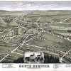 Panoramic city maps, popular at the turn of the century, depicted U.S. towns from the perspective that came to be known as bird’s-eye maps. These non-photographic old maps, depicted from oblique angles, showed street patterns, buildings and the predominant surrounding landscape in perspective. Going to great lengths to make these maps, artists would often climb surrounding hills or trees, sometimes even building platforms from which to achieve the bird’s eye” perspective. They also used to take rides in hot air balloons in order to get the proper perspective. To bolster sales of these old panoramic city maps, the artists would often choke town harbors full of ships, include proposed building developments and depict a vivacious, bustling industry. Historically interesting and beautifully drawn, it is no wonder these old panoramic city maps are making a popular comeback. Bring the spirit of your town’s history back to life with these stunning old bird’s-eye maps.”