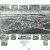 Panoramic city maps, popular at the turn of the century, depicted U.S. towns from the perspective that came to be known as bird’s-eye maps. These non-photographic old maps, depicted from oblique angles, showed street patterns, buildings and the predominant surrounding landscape in perspective. Going to great lengths to make these maps, artists would often climb surrounding hills or trees, sometimes even building platforms from which to achieve the bird’s eye” perspective. They also used to take rides in hot air balloons in order to get the proper perspective. To bolster sales of these old panoramic city maps, the artists would often choke town harbors full of ships, include proposed building developments and depict a vivacious, bustling industry. Historically interesting and beautifully drawn, it is no wonder these old panoramic city maps are making a popular comeback. Bring the spirit of your town’s history back to life with these stunning old bird’s-eye maps.”