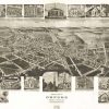 Panoramic city maps, popular at the turn of the century, depicted U.S. towns from the perspective that came to be known as bird’s-eye maps. These non-photographic old maps, depicted from oblique angles, showed street patterns, buildings and the predominant surrounding landscape in perspective. Going to great lengths to make these maps, artists would often climb surrounding hills or trees, sometimes even building platforms from which to achieve the bird’s eye” perspective. They also used to take rides in hot air balloons in order to get the proper perspective. To bolster sales of these old panoramic city maps, the artists would often choke town harbors full of ships, include proposed building developments and depict a vivacious, bustling industry. Historically interesting and beautifully drawn, it is no wonder these old panoramic city maps are making a popular comeback. Bring the spirit of your town’s history back to life with these stunning old bird’s-eye maps.”