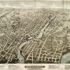 This view of Pawtucket and Central Falls in Rhode Island names up to 56 locations, including churches, banks, hotels, the Post Office, and numerous manufacturing buildings. The map also identifies neighborhoods, ponds, railroad lines, street names, and more. Buildings are indexed below. A very information-rich map of the then-bustling Central Falls & Pawtucket areas!