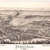 Panoramic city maps, popular at the turn of the century, depicted U.S. towns from the perspective that came to be known as bird’s-eye maps. These non-photographic old maps, depicted from oblique angles, showed street patterns, buildings and the predominant surrounding landscape in perspective. Going to great lengths to make these maps, artists would often climb surrounding hills or trees, sometimes even building platforms from which to achieve the bird’s eye” perspective. They also used to take rides in hot air balloons in order to get the proper perspective. To bolster sales of these old panoramic city maps, the artists would often choke town harbors full of ships, include proposed building developments and depict a vivacious, bustling industry. Historically interesting and beautifully drawn, it is no wonder these old panoramic city maps are making a popular comeback. Bring the spirit of your town’s history back to life with these stunning old bird’s-eye maps.”