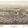 Panoramic city maps, popular at the turn of the century, depicted U.S. towns from the perspective that came to be known as bird’s-eye maps. These non-photographic old maps, depicted from oblique angles, showed street patterns, buildings and the predominant surrounding landscape in perspective. Going to great lengths to make these maps, artists would often climb surrounding hills or trees, sometimes even building platforms from which to achieve the bird’s eye” perspective. They also used to take rides in hot air balloons in order to get the proper perspective. To bolster sales of these old panoramic city maps, the artists would often choke town harbors full of ships, include proposed building developments and depict a vivacious, bustling industry. Historically interesting and beautifully drawn, it is no wonder these old panoramic city maps are making a popular comeback. Bring the spirit of your town’s history back to life with these stunning old bird’s-eye maps.”