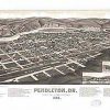 Panoramic city maps, popular at the turn of the century, depicted U.S. towns from the perspective that came to be known as bird’s-eye maps. These non-photographic old maps, depicted from oblique angles, showed street patterns, buildings and the predominant surrounding landscape in perspective. Going to great lengths to make these maps, artists would often climb surrounding hills or trees, sometimes even building platforms from which to achieve the bird’s eye” perspective. They also used to take rides in hot air balloons in order to get the proper perspective. To bolster sales of these old panoramic city maps, the artists would often choke town harbors full of ships, include proposed building developments and depict a vivacious, bustling industry. Historically interesting and beautifully drawn, it is no wonder these old panoramic city maps are making a popular comeback. Bring the spirit of your town’s history back to life with these stunning old bird’s-eye maps.”