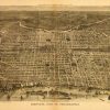 Panoramic city maps, popular at the turn of the century, depicted U.S. towns from the perspective that came to be known as bird’s-eye maps. These non-photographic old maps, depicted from oblique angles, showed street patterns, buildings and the predominant surrounding landscape in perspective. Going to great lengths to make these maps, artists would often climb surrounding hills or trees, sometimes even building platforms from which to achieve the bird’s eye” perspective. They also used to take rides in hot air balloons in order to get the proper perspective. To bolster sales of these old panoramic city maps, the artists would often choke town harbors full of ships, include proposed building developments and depict a vivacious, bustling industry. Historically interesting and beautifully drawn, it is no wonder these old panoramic city maps are making a popular comeback. Bring the spirit of your town’s history back to life with these stunning old bird’s-eye maps.”