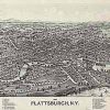 Panoramic city maps, popular at the turn of the century, depicted U.S. towns from the perspective that came to be known as bird’s-eye maps. These non-photographic old maps, depicted from oblique angles, showed street patterns, buildings and the predominant surrounding landscape in perspective. Going to great lengths to make these maps, artists would often climb surrounding hills or trees, sometimes even building platforms from which to achieve the bird’s eye” perspective. They also used to take rides in hot air balloons in order to get the proper perspective. To bolster sales of these old panoramic city maps, the artists would often choke town harbors full of ships, include proposed building developments and depict a vivacious, bustling industry. Historically interesting and beautifully drawn, it is no wonder these old panoramic city maps are making a popular comeback. Bring the spirit of your town’s history back to life with these stunning old bird’s-eye maps.”