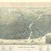 Panoramic city maps, popular at the turn of the century, depicted U.S. towns from the perspective that came to be known as bird’s-eye maps. These non-photographic old maps, depicted from oblique angles, showed street patterns, buildings and the predominant surrounding landscape in perspective. Going to great lengths to make these maps, artists would often climb surrounding hills or trees, sometimes even building platforms from which to achieve the bird’s eye” perspective. They also used to take rides in hot air balloons in order to get the proper perspective. To bolster sales of these old panoramic city maps, the artists would often choke town harbors full of ships, include proposed building developments and depict a vivacious, bustling industry. Historically interesting and beautifully drawn, it is no wonder these old panoramic city maps are making a popular comeback. Bring the spirit of your town’s history back to life with these stunning old bird’s-eye maps.”