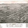 Panoramic city maps, popular at the turn of the century, depicted U.S. towns from the perspective that came to be known as bird’s-eye maps. These non-photographic old maps, depicted from oblique angles, showed street patterns, buildings and the predominant surrounding landscape in perspective. Going to great lengths to make these maps, artists would often climb surrounding hills or trees, sometimes even building platforms from which to achieve the bird’s eye” perspective. They also used to take rides in hot air balloons in order to get the proper perspective. To bolster sales of these old panoramic city maps, the artists would often choke town harbors full of ships, include proposed building developments and depict a vivacious, bustling industry. Historically interesting and beautifully drawn, it is no wonder these old panoramic city maps are making a popular comeback. Bring the spirit of your town’s history back to life with these stunning old bird’s-eye maps.”