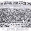 Panoramic city maps, popular at the turn of the century, depicted U.S. towns from the perspective that came to be known as bird’s-eye maps. These non-photographic old maps, depicted from oblique angles, showed street patterns, buildings and the predominant surrounding landscape in perspective. Going to great lengths to make these maps, artists would often climb surrounding hills or trees, sometimes even building platforms from which to achieve the bird’s eye” perspective. They also used to take rides in hot air balloons in order to get the proper perspective. To bolster sales of these old panoramic city maps, the artists would often choke town harbors full of ships, include proposed building developments and depict a vivacious, bustling industry. Historically interesting and beautifully drawn, it is no wonder these old panoramic city maps are making a popular comeback. Bring the spirit of your town’s history back to life with these stunning old bird’s-eye maps.”