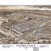 Panoramic city maps, popular at the turn of the century, depicted U.S. towns from the perspective that came to be known as bird’s-eye maps. These non-photographic old maps, depicted from oblique angles, showed street patterns, buildings and the predominant surrounding landscape in perspective. Going to great lengths to make these maps, artists would often climb surrounding hills or trees, sometimes even building platforms from which to achieve the bird’s eye” perspective. They also used to take rides in hot air balloons in order to get the proper perspective. To bolster sales of these old panoramic city maps, the artists would often choke town harbors full of ships, include proposed building developments and depict a vivacious, bustling industry. Historically interesting and beautifully drawn, it is no wonder these old panoramic city maps are making a popular comeback. Bring the spirit of your town’s history back to life with these stunning old bird’s-eye maps.”