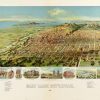 Panoramic city maps, popular at the turn of the century, depicted U.S. towns from the perspective that came to be known as bird’s-eye maps. These non-photographic old maps, depicted from oblique angles, showed street patterns, buildings and the predominant surrounding landscape in perspective. Going to great lengths to make these maps, artists would often climb surrounding hills or trees, sometimes even building platforms from which to achieve the bird’s eye” perspective. They also used to take rides in hot air balloons in order to get the proper perspective. To bolster sales of these old panoramic city maps, the artists would often choke town harbors full of ships, include proposed building developments and depict a vivacious, bustling industry. Historically interesting and beautifully drawn, it is no wonder these old panoramic city maps are making a popular comeback. Bring the spirit of your town’s history back to life with these stunning old bird’s-eye maps.”