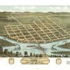 Panoramic city maps, popular at the turn of the century, depicted U.S. towns from the perspective that came to be known as bird’s-eye maps. These non-photographic old maps, depicted from oblique angles, showed street patterns, buildings and the predominant surrounding landscape in perspective. Going to great lengths to make these maps, artists would often climb surrounding hills or trees, sometimes even building platforms from which to achieve the bird’s eye” perspective. They also used to take rides in hot air balloons in order to get the proper perspective. To bolster sales of these old panoramic city maps, the artists would often choke town harbors full of ships, include proposed building developments and depict a vivacious, bustling industry. Historically interesting and beautifully drawn, it is no wonder these old panoramic city maps are making a popular comeback. Bring the spirit of your town’s history back to life with these stunning old bird’s-eye maps.”
