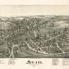Panoramic city maps, popular at the turn of the century, depicted U.S. towns from the perspective that came to be known as bird’s-eye maps. These non-photographic old maps, depicted from oblique angles, showed street patterns, buildings and the predominant surrounding landscape in perspective. Going to great lengths to make these maps, artists would often climb surrounding hills or trees, sometimes even building platforms from which to achieve the bird’s eye” perspective. They also used to take rides in hot air balloons in order to get the proper perspective. To bolster sales of these old panoramic city maps, the artists would often choke town harbors full of ships, include proposed building developments and depict a vivacious, bustling industry. Historically interesting and beautifully drawn, it is no wonder these old panoramic city maps are making a popular comeback. Bring the spirit of your town’s history back to life with these stunning old bird’s-eye maps.”