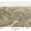 Panoramic city maps, popular at the turn of the century, depicted U.S. towns from the perspective that came to be known as bird’s-eye maps. These non-photographic old maps, depicted from oblique angles, showed street patterns, buildings and the predominant surrounding landscape in perspective. Going to great lengths to make these maps, artists would often climb surrounding hills or trees, sometimes even building platforms from which to achieve the bird’s eye” perspective. They also used to take rides in hot air balloons in order to get the proper perspective. To bolster sales of these old panoramic city maps, the artists would often choke town harbors full of ships, include proposed building developments and depict a vivacious, bustling industry. Historically interesting and beautifully drawn, it is no wonder these old panoramic city maps are making a popular comeback. Bring the spirit of your town’s history back to life with these stunning old bird’s-eye maps.”
