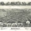 Panoramic city maps, popular at the turn of the century, depicted U.S. towns from the perspective that came to be known as bird’s-eye maps. These non-photographic old maps, depicted from oblique angles, showed street patterns, buildings and the predominant surrounding landscape in perspective. Going to great lengths to make these maps, artists would often climb surrounding hills or trees, sometimes even building platforms from which to achieve the bird’s eye” perspective. They also used to take rides in hot air balloons in order to get the proper perspective. To bolster sales of these old panoramic city maps, the artists would often choke town harbors full of ships, include proposed building developments and depict a vivacious, bustling industry. Historically interesting and beautifully drawn, it is no wonder these old panoramic city maps are making a popular comeback. Bring the spirit of your town’s history back to life with these stunning old bird’s-eye maps.”