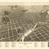 Panoramic city maps, popular at the turn of the century, depicted U.S. towns from the perspective that came to be known as bird’s-eye maps. These non-photographic old maps, depicted from oblique angles, showed street patterns, buildings and the predominant surrounding landscape in perspective. Going to great lengths to make these maps, artists would often climb surrounding hills or trees, sometimes even building platforms from which to achieve the bird’s eye” perspective. They also used to take rides in hot air balloons in order to get the proper perspective. To bolster sales of these old panoramic city maps, the artists would often choke town harbors full of ships, include proposed building developments and depict a vivacious, bustling industry. Historically interesting and beautifully drawn, it is no wonder these old panoramic city maps are making a popular comeback. Bring the spirit of your town’s history back to life with these stunning old bird’s-eye maps.”