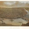Panoramic city maps, popular at the turn of the century, depicted U.S. towns from the perspective that came to be known as bird’s-eye maps. These non-photographic old maps, depicted from oblique angles, showed street patterns, buildings and the predominant surrounding landscape in perspective. Going to great lengths to make these maps, artists would often climb surrounding hills or trees, sometimes even building platforms from which to achieve the bird’s eye” perspective. They also used to take rides in hot air balloons in order to get the proper perspective. To bolster sales of these old panoramic city maps, the artists would often choke town harbors full of ships, include proposed building developments and depict a vivacious, bustling industry. Historically interesting and beautifully drawn, it is no wonder these old panoramic city maps are making a popular comeback. Bring the spirit of your town’s history back to life with these stunning old bird’s-eye maps.”