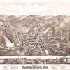 Panoramic city maps, popular at the turn of the century, depicted U.S. towns from the perspective that came to be known as bird’s-eye maps. These non-photographic old maps, depicted from oblique angles, showed street patterns, buildings and the predominant surrounding landscape in perspective. Going to great lengths to make these maps, artists would often climb surrounding hills or trees, sometimes even building platforms from which to achieve the bird’s eye” perspective. They also used to take rides in hot air balloons in order to get the proper perspective. To bolster sales of these old panoramic city maps, the artists would often choke town harbors full of ships, include proposed building developments and depict a vivacious, bustling industry. Historically interesting and beautifully drawn, it is no wonder these old panoramic city maps are making a popular comeback. Bring the spirit of your town’s history back to life with these stunning old bird’s-eye maps.”