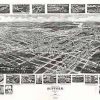 Panoramic city maps, popular at the turn of the century, depicted U.S. towns from the perspective that came to be known as bird’s-eye maps. These non-photographic old maps, depicted from oblique angles, showed street patterns, buildings and the predominant surrounding landscape in perspective. Going to great lengths to make these maps, artists would often climb surrounding hills or trees, sometimes even building platforms from which to achieve the bird’s eye” perspective. They also used to take rides in hot air balloons in order to get the proper perspective. To bolster sales of these old panoramic city maps, the artists would often choke town harbors full of ships, include proposed building developments and depict a vivacious, bustling industry. Historically interesting and beautifully drawn, it is no wonder these old panoramic city maps are making a popular comeback. Bring the spirit of your town’s history back to life with these stunning old bird’s-eye maps.”