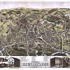 Panoramic city maps, popular at the turn of the century, depicted U.S. towns from the perspective that came to be known as bird’s-eye maps. These non-photographic old maps, depicted from oblique angles, showed street patterns, buildings and the predominant surrounding landscape in perspective. Going to great lengths to make these maps, artists would often climb surrounding hills or trees, sometimes even building platforms from which to achieve the bird’s eye” perspective. They also used to take rides in hot air balloons in order to get the proper perspective. To bolster sales of these old panoramic city maps, the artists would often choke town harbors full of ships, include proposed building developments and depict a vivacious, bustling industry. Historically interesting and beautifully drawn, it is no wonder these old panoramic city maps are making a popular comeback. Bring the spirit of your town’s history back to life with these stunning old bird’s-eye maps.”