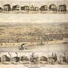 Panoramic city maps, popular at the turn of the century, depicted U.S. towns from the perspective that came to be known as bird’s-eye maps. These non-photographic old maps, depicted from oblique angles, showed street patterns, buildings and the predominant surrounding landscape in perspective. Going to great lengths to make these maps, artists would often climb surrounding hills or trees, sometimes even building platforms from which to achieve the bird’s eye” perspective. They also used to take rides in hot air balloons in order to get the proper perspective. To bolster sales of these old panoramic city maps, the artists would often choke town harbors full of ships, include proposed building developments and depict a vivacious, bustling industry. Historically interesting and beautifully drawn, it is no wonder these old panoramic city maps are making a popular comeback. Bring the spirit of your town’s history back to life with these stunning old bird’s-eye maps.”
