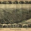Panoramic city maps, popular at the turn of the century, depicted U.S. towns from the perspective that came to be known as bird’s-eye maps. These non-photographic old maps, depicted from oblique angles, showed street patterns, buildings and the predominant surrounding landscape in perspective. Going to great lengths to make these maps, artists would often climb surrounding hills or trees, sometimes even building platforms from which to achieve the bird’s eye” perspective. They also used to take rides in hot air balloons in order to get the proper perspective. To bolster sales of these old panoramic city maps, the artists would often choke town harbors full of ships, include proposed building developments and depict a vivacious, bustling industry. Historically interesting and beautifully drawn, it is no wonder these old panoramic city maps are making a popular comeback. Bring the spirit of your town’s history back to life with these stunning old bird’s-eye maps.”