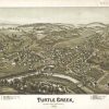 Panoramic city maps, popular at the turn of the century, depicted U.S. towns from the perspective that came to be known as bird’s-eye maps. These non-photographic old maps, depicted from oblique angles, showed street patterns, buildings and the predominant surrounding landscape in perspective. Going to great lengths to make these maps, artists would often climb surrounding hills or trees, sometimes even building platforms from which to achieve the bird’s eye” perspective. They also used to take rides in hot air balloons in order to get the proper perspective. To bolster sales of these old panoramic city maps, the artists would often choke town harbors full of ships, include proposed building developments and depict a vivacious, bustling industry. Historically interesting and beautifully drawn, it is no wonder these old panoramic city maps are making a popular comeback. Bring the spirit of your town’s history back to life with these stunning old bird’s-eye maps.”