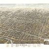 Panoramic city maps, popular at the turn of the century, depicted U.S. towns from the perspective that came to be known as bird’s-eye maps. These non-photographic old maps, depicted from oblique angles, showed street patterns, buildings and the predominant surrounding landscape in perspective. Going to great lengths to make these maps, artists would often climb surrounding hills or trees, sometimes even building platforms from which to achieve the bird’s eye” perspective. They also used to take rides in hot air balloons in order to get the proper perspective. To bolster sales of these old panoramic city maps, the artists would often choke town harbors full of ships, include proposed building developments and depict a vivacious, bustling industry. Historically interesting and beautifully drawn, it is no wonder these old panoramic city maps are making a popular comeback. Bring the spirit of your town’s history back to life with these stunning old bird’s-eye maps.”
