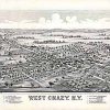 Panoramic city maps, popular at the turn of the century, depicted U.S. towns from the perspective that came to be known as bird’s-eye maps. These non-photographic old maps, depicted from oblique angles, showed street patterns, buildings and the predominant surrounding landscape in perspective. Going to great lengths to make these maps, artists would often climb surrounding hills or trees, sometimes even building platforms from which to achieve the bird’s eye” perspective. They also used to take rides in hot air balloons in order to get the proper perspective. To bolster sales of these old panoramic city maps, the artists would often choke town harbors full of ships, include proposed building developments and depict a vivacious, bustling industry. Historically interesting and beautifully drawn, it is no wonder these old panoramic city maps are making a popular comeback. Bring the spirit of your town’s history back to life with these stunning old bird’s-eye maps.”