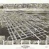 Panoramic city maps, popular at the turn of the century, depicted U.S. towns from the perspective that came to be known as bird’s-eye maps. These non-photographic old maps, depicted from oblique angles, showed street patterns, buildings and the predominant surrounding landscape in perspective. Going to great lengths to make these maps, artists would often climb surrounding hills or trees, sometimes even building platforms from which to achieve the bird’s eye” perspective. They also used to take rides in hot air balloons in order to get the proper perspective. To bolster sales of these old panoramic city maps, the artists would often choke town harbors full of ships, include proposed building developments and depict a vivacious, bustling industry. Historically interesting and beautifully drawn, it is no wonder these old panoramic city maps are making a popular comeback. Bring the spirit of your town’s history back to life with these stunning old bird’s-eye maps.”