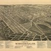 Panoramic city maps, popular at the turn of the century, depicted U.S. towns from the perspective that came to be known as bird’s-eye maps. These non-photographic old maps, depicted from oblique angles, showed street patterns, buildings and the predominant surrounding landscape in perspective. Going to great lengths to make these maps, artists would often climb surrounding hills or trees, sometimes even building platforms from which to achieve the bird’s eye” perspective. They also used to take rides in hot air balloons in order to get the proper perspective. To bolster sales of these old panoramic city maps, the artists would often choke town harbors full of ships, include proposed building developments and depict a vivacious, bustling industry. Historically interesting and beautifully drawn, it is no wonder these old panoramic city maps are making a popular comeback. Bring the spirit of your town’s history back to life with these stunning old bird’s-eye maps.”