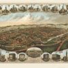 Panoramic city maps, popular at the turn of the century, depicted U.S. towns from the perspective that came to be known as bird’s-eye maps. These non-photographic old maps, depicted from oblique angles, showed street patterns, buildings and the predominant surrounding landscape in perspective. Going to great lengths to make these maps, artists would often climb surrounding hills or trees, sometimes even building platforms from which to achieve the bird’s eye” perspective. They also used to take rides in hot air balloons in order to get the proper perspective. To bolster sales of these old panoramic city maps, the artists would often choke town harbors full of ships, include proposed building developments and depict a vivacious, bustling industry. Historically interesting and beautifully drawn, it is no wonder these old panoramic city maps are making a popular comeback. Bring the spirit of your town’s history back to life with these stunning old bird’s-eye maps.”