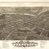 Panoramic city maps, popular at the turn of the century, depicted U.S. towns from the perspective that came to be known as bird’s-eye maps. These non-photographic old maps, depicted from oblique angles, showed street patterns, buildings and the predominant surrounding landscape in perspective. Going to great lengths to make these maps, artists would often climb surrounding hills or trees, sometimes even building platforms from which to achieve the bird’s eye” perspective. They also used to take rides in hot air balloons in order to get the proper perspective. To bolster sales of these old panoramic city maps, the artists would often choke town harbors full of ships, include proposed building developments and depict a vivacious, bustling industry. Historically interesting and beautifully drawn, it is no wonder these old panoramic city maps are making a popular comeback. Bring the spirit of your town’s history back to life with these stunning old bird’s-eye maps.”
