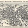 Our superb plan-view of Paris early in the 17th century was the work of a famous Dutch cartographer, Claes Janz Visscher. It is unsurpassed in its accuracy, wealth of information, decorative appeal, and high quality of craftsmanship. Every building of the city is shown in perspective, and because of its size, even small structures appear with recognizable detail.