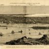 This magnificent panorama overlook of Newport, Rhode Island was featured in Harper’s Weekly. It references key building locations along the margins. The map names various churches, an opera house, City Hall, the post office, mills, forts, schools, and more. Smoke pours from the chimneys of factories as dozens of boats dot the harbor.