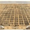 This bird’s-eye view of Urbana, Illinois was created in 1869. Two years before this lithograph was published, Urbana was selected as the site for the new state college of Illinois. Its first building is depicted in one of the two inset views flanking the title on this unique view.