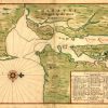 This stunning early map of the New York City region was created by Joan Vinckeboons, a cartographer from Holland. This is a manuscript map, meaning there was only one copy made, and inckeboons drew this on site with pen-and-ink and watercolor. It’s a fascinating map showing landowners, Indian houses, plantations and farms. It also shows Staten Island, Long Island and many interesting points of interest. This original map is in the Library of Congress.