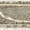 Panoramic city maps, popular at the turn of the century, depicted U.S. towns from the perspective that came to be known as bird’s-eye maps. These non-photographic old maps, depicted from oblique angles, showed street patterns, buildings and the predominant surrounding landscape in perspective. Going to great lengths to make these maps, artists would often climb surrounding hills or trees, sometimes even building platforms from which to achieve the bird’s eye” perspective. They also used to take rides in hot air balloons in order to get the proper perspective. To bolster sales of these old panoramic city maps, the artists would often choke town harbors full of ships, include proposed building developments and depict a vivacious, bustling industry. Historically interesting and beautifully drawn, it is no wonder these old panoramic city maps are making a popular comeback. Bring the spirit of your town’s history back to life with these stunning old bird’s-eye maps.”