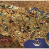 This unique pictorial map of America was published in 1946 by William Gropper. This map includes vibrant illustrations for each individual state that depicts a legend or folklore native to that state. American folklore like Paul Bunyan, Buffalo Bill, and Jesse James all have their own illustrations in this map.